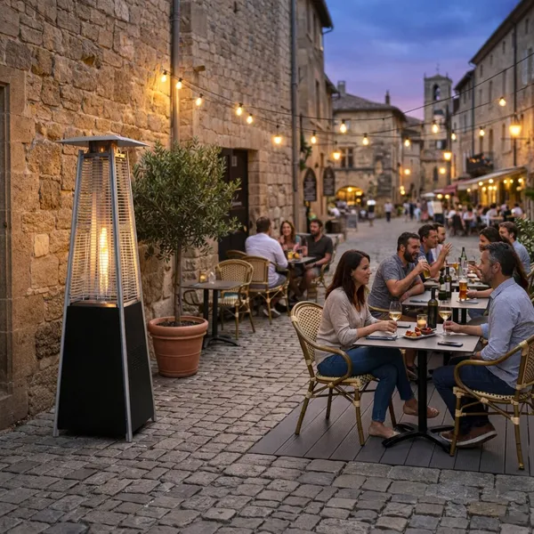 A beépített hőfokszabályzás lehetővé teszi a fűtési intenzitás egyszerű beállítását az időjáráshoz és az igényekhez igazítva. Az elektromos gyújtás gyors és kényelmes indítást tesz lehetővé. A készülék propán-bután gázzal működik.