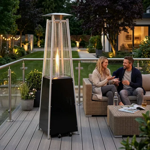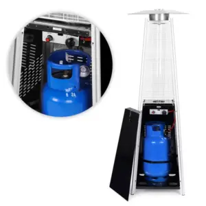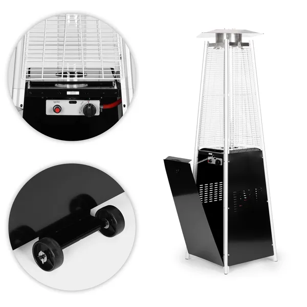 11,5 kW teljesítményű gázüzemű teraszfűtő, amely ideális választás kertbe, teraszra, pavilonba vagy vendéglátóhelyek kültéri részeire. A 180 cm magas kialakítás, a minden oldalról látható láng és az elegáns forma kellemes meleget és hangulatos környezetet teremt a hűvösebb estéken is.