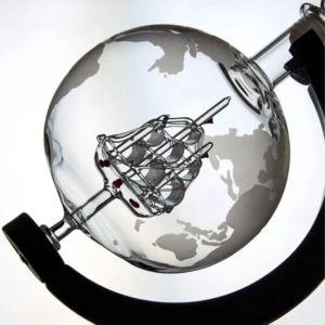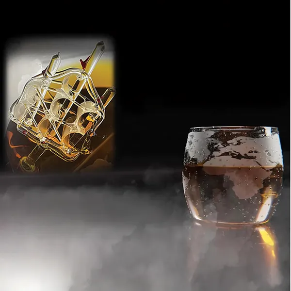 Élvezd kedvenc whiskyd különleges ízvilágát egy kifinomult, kézzel fújt glóbusz karaffában, amelyben egy aprólékosan megmunkált üveg vitorlás hajó úszik a borostyánszínű italban.