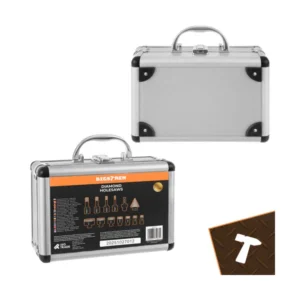 A készlet M14 menetes rögzítésű, így megfelelő sarokcsiszolóhoz, a mellékelt adapterrel pedig hagyományos fúrógéphez is. Használható szárazon vagy vizes hűtéssel; a hűtés segít csökkenteni a túlmelegedést és növeli az élettartamot. A strapabíró hordtáska rendezett tárolást és biztonságos szállítást ad.