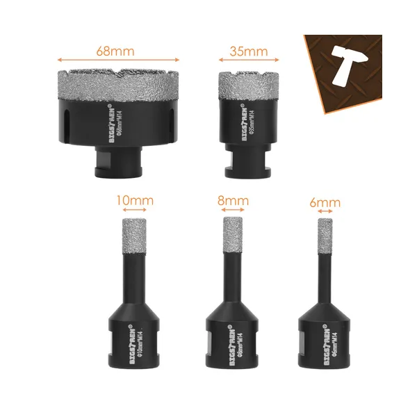 Ez a gyémánt lyukfúró készlet megbízható választás precíz furatok készítéséhez kemény burkolatokban és kőanyagokban. A vákuumforrasztott szintetikus gyémántszemcsék gyors, tiszta vágást segítenek, a masszív acéltest pedig stabilitást ad a mindennapi szerelési és burkolási munkákhoz.