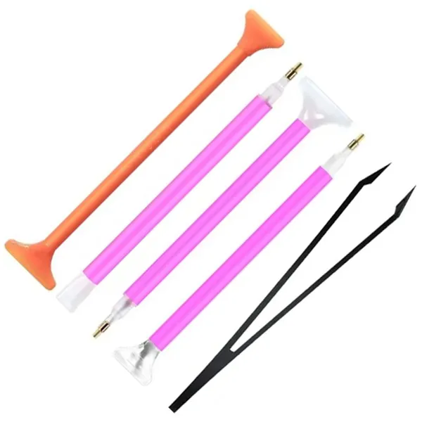• Hímzéshez / gyémántfestéshez (diamond painting) szükséges kiegészítő készlet. Teljes készlet, amely lehetővé teszi a gyémántmozaikokkal való kaland megkezdését. A készlet tartalmaz 3 tollat különböző végekkel, spatulát, csipeszt, két spatulát, kanalat, tölcséres tálcát, két tálcát a gyémántokhoz, 10 ragasztókockát és matricákat, dedikált dobozt és táskát a kiegészítők számára.