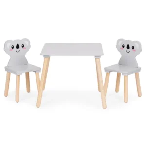 Alakíts ki vidám, biztonságos kuckót gyermekednek az ECOTOYS koala-mintás bútor-szettjével! A készlet egy tágas asztalból és két, ergonomikus háttámlájú székből áll, így ideális rajzoláshoz, építőkockázáshoz, tanuláshoz vagy akár uzsonnához.