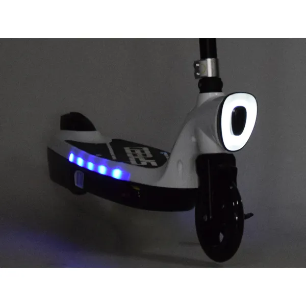 Könnyű, mégis erős alumínium–acél vázzal készülő elektromos roller, amely színes LED világításával azonnal magára vonzza a figyelmet – ideális 6–12 éves, legfeljebb 50 kg-os gyerekeknek.