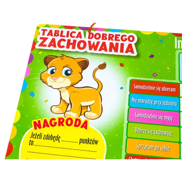 Változtasd a napi feladatokat izgalmas játékká! A jutalmazó viselkedési tábla segít a gyerekeknek megérteni a szabályokat, nyomon követni a jó cselekedeteket és büszkén gyűjteni a pontokat. A 47 × 33 cm-es fehér tábla jól látható a gyerekszobában, dekoratív kiegészítőként is szolgál.