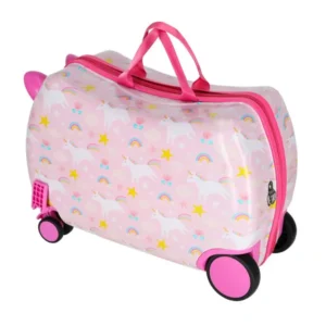 Ez a gyerek utazóbőrönd több, mint egy aranyos kiegészítő: könnyű, strapabíró és úgy készült, hogy a kicsiknek is egyszerű legyen vele közlekedni. Az unikornis mintás, pasztell rózsaszín design azonnal kedvenc lesz, a kompakt kabinméret pedig ideálissá teszi autós, vonatos és repülős utakhoz is.