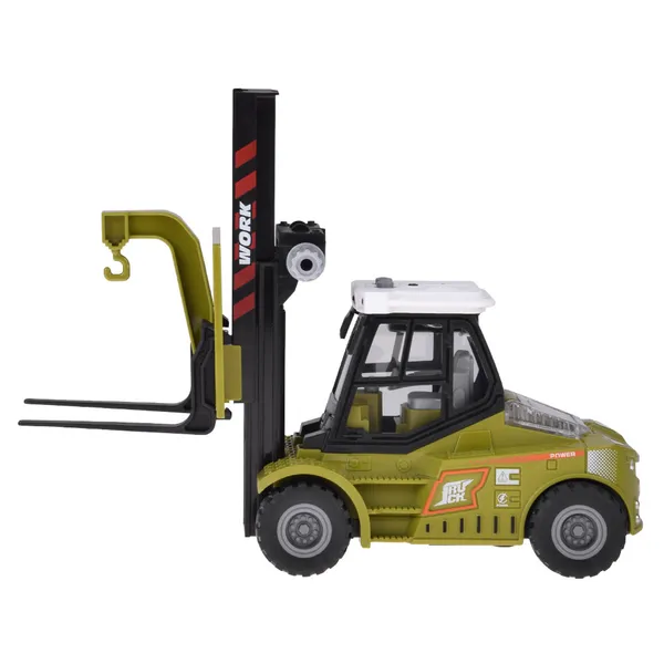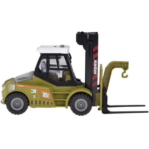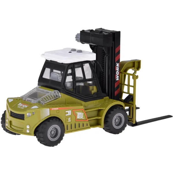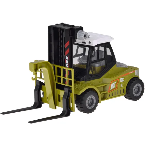 A sötétzöld, 22 cm-es játék targonca élethű fény- és hanghatásokkal, valamint kézzel mozgatható, szélességükben állítható villákkal teszi még izgalmasabbá a raktározós szerepjátékot. Strapabíró műanyag felépítése és puha gumi kerekei miatt lakásban is biztonságosan használható.