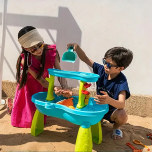 A 2 az 1-ben vizes-homokozó asztallal gyermeked egyszerre építhet homokvárat és pancsolhat, miközben biztonságos, BPA-mentes anyagok veszik körül. A több mint 30 színes tartozék hosszan tartó, fejlesztő szórakozást kínál a kertben vagy a strandon.