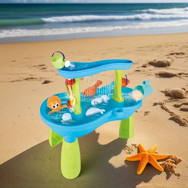 Gyermek 2 az 1-ben vizes-homokozó asztal tartozékokkal, nagy, kültéri