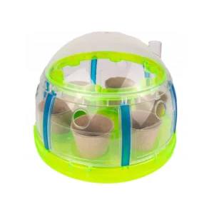 • Az áttetsző, nyitható tetejű üvegház 25 × 17 cm-es mikroklímát teremt a gyors csírázáshoz.
