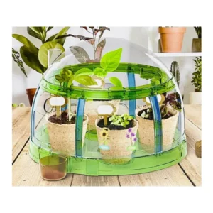 Fedezd fel a növények varázslatos világát játék közben! A bio mini üvegház szett minden szükséges eszközt tartalmaz ahhoz, hogy a 6+ éves gyerekek saját ablak- vagy erkélykertjükben magról neveljenek napraforgót, metélőhagymát, paprikát és más izgalmas növényeket. A tanulás, a felelősség és a környezettudatosság kéz a kézben jár a szabadtéri élménnyel.