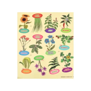 • 6 × vetőmag: érzékeny mimóza, napraforgó, évelő virág, metélőhagyma, szegfű, csípős paprika