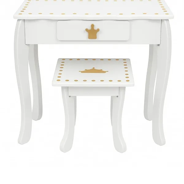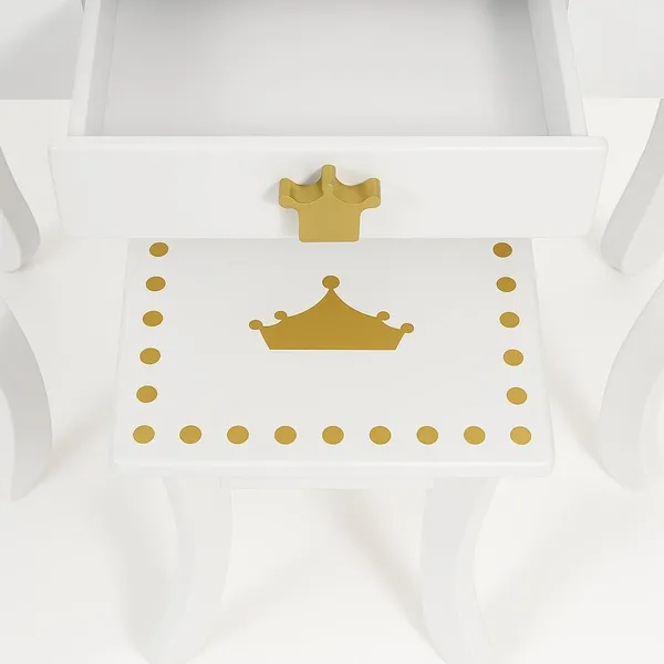 Tükrös, fehér gyermek toalettasztal, amely játék közben segíti az önálló készülődést és a rend szeretetét. Remek alap a szerepjátékhoz, fésülködéshez és a kiegészítők rendezett tárolásához a gyerekszobában.