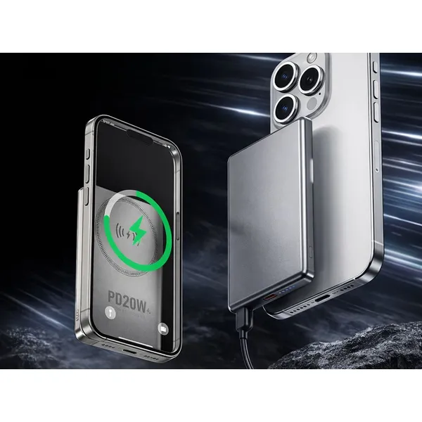 Gyors töltésű powerbank 5000 mAh, 20 W PD, 15 W vezeték nélküli, USB-C
