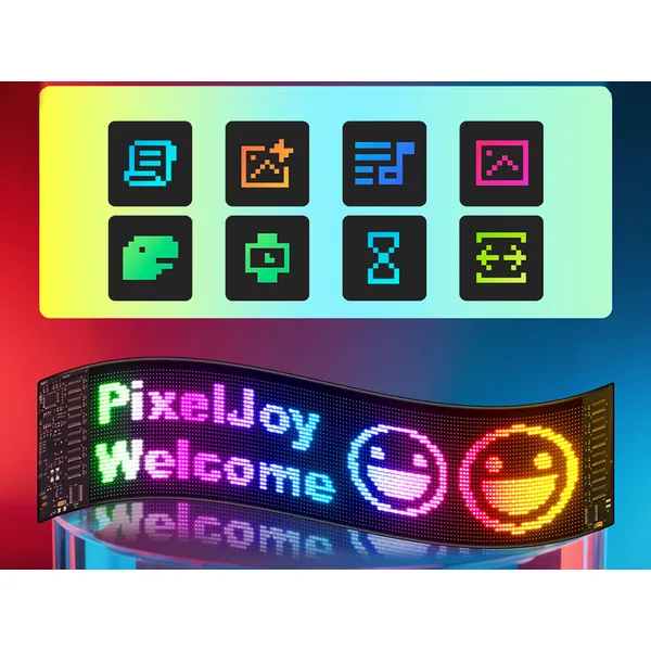 A vezérlőalkalmazásban egyszerűen készíthetsz saját feliratokat és animációkat, illetve használhatsz előre elkészített sablonokat. Időzítő funkcióval beállítható az automatikus be- és kikapcsolás, a hangvezérelt mód pedig zenére reagáló fényhatásokat ad.