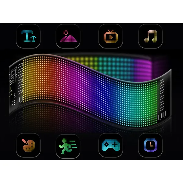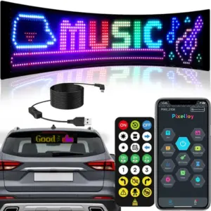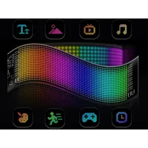 Hajlítható 16×64 LED kijelzőpanel, amellyel látványos szövegeket, üzeneteket és animációkat jeleníthetsz meg jármű szélvédőjén vagy üzletkirakatban. A tartalom gyorsan módosítható mobilalkalmazásból (Bluetooth) vagy a csomagban lévő távirányítóval, így mindig az aktuális helyzethez igazíthatod a megjelenést.