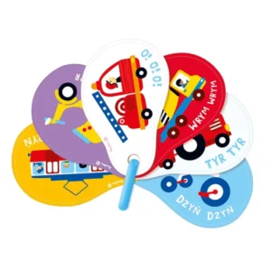Hangos járművek című képeskönyvünk egy gyűrűs, 14 oldalas lapozó, amelyet már 1 éves kortól bátran használhattok otthon, útközben vagy a babakocsiban. A kedves, részletgazdag jármű-illusztrációk játékosan ösztönzik a kicsiket a hangutánzásra, a mutogatásra és az első szavak kimondására.