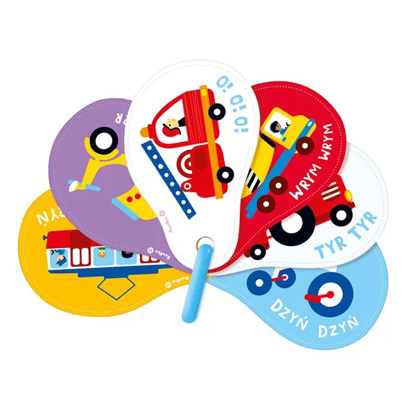 A gyűrűs lapozó vidám jármű-illusztrációival segíti a kicsik első hangutánzásait és szókincsének bővítését. Vastag kartonlapjai utazás közben is strapabíró társak, így a közös játék bárhol folytatódhat.