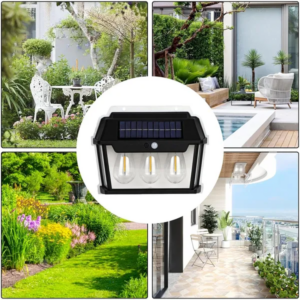 Az ajánlat 1 db hármas LED napelemes kültéri fali lámpára vonatkozik, mozgásérzékelővel. Ideális bejárathoz, teraszhoz, garázshoz vagy homlokzatra, ahol automatikus megvilágítást szeretne kábelezés nélkül.