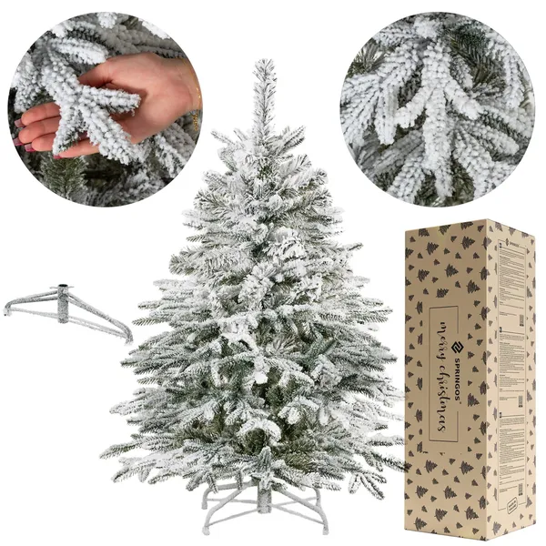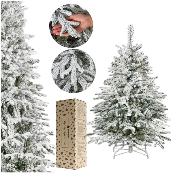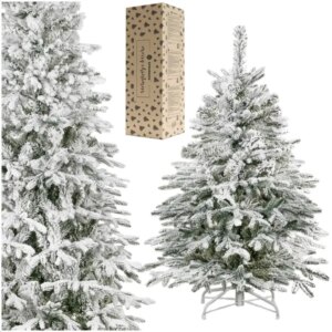 A hóval hintett ágak természetes hatást keltenek, a fém talp pedig stabil tartást biztosít, így éveken át élvezheted a gondozásmentes, ünnepi hangulatot.