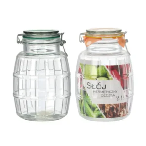 Az 2,1 literes, hordó alakú üveg befőttesüveg erős fémkarral és színes szilikon gyűrűvel légmentesen zár, így hosszabb ideig megőrzi a tészták, kekszek vagy savanyúságok frissességét. Átlátszó kialakítása és vidám tömítőszínei stílusos rendet varázsolnak a konyhába.