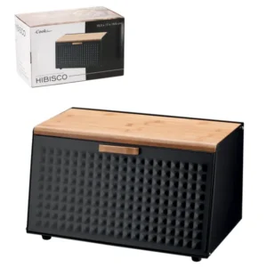 A természetes bambusz fedél és a strapabíró, zománcozott acéltest megőrzi a pékáru frissességét. Elegáns fekete dizájnjával modern stílust ad a konyhának.