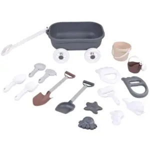 Ez az elegáns, húzható kocsival ellátott homokozó szett ideális a kreatív játékhoz homokozóban, strandon vagy a kertben. A 16 darabos készlet segítségével a gyerekek várakat, alakzatokat és saját „homokvilágot” építhetnek, miközben fejlődik a kézügyességük és a képzelőerejük.