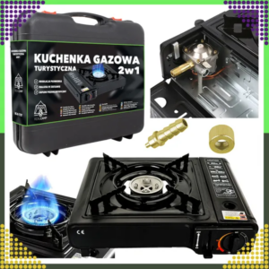 Hordozható 2-az-1-ben kartusos gázfőző kofferrel kempinghez