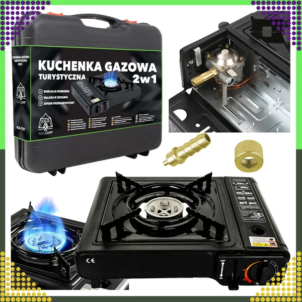 A 2-az-1-ben hordozható gázfőzővel bárhol könnyedén megfőzheted a reggeli kávét vagy egy tartalmas vacsorát. A piezoelektromos gyújtásnak köszönhetően nincs szükség gyufára, a lángszabályzóval pedig pontosan beállíthatod a hőfokot. A standard menetes butángáz-kartus pár mozdulattal csatlakoztatható, a strapabíró műanyag koffer pedig óvja a készüléket szállítás közben.