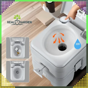 Az öblítőtartállyal szerelt, hordozható kemping WC 10 liternyi frissvizet és 20 liternyi szennyvizet kezel, így bárhol tiszta, szagmentes megoldást nyújt; könnyű súlya és fogantyúja révén gyorsan felállítható a telken, sátor mellett vagy vészhelyzetben.