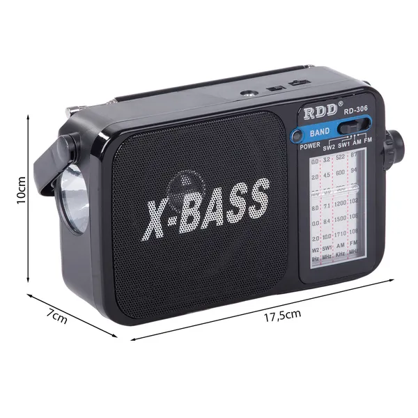 Hordozható, tölthető rádió praktikus fogantyúval és retro stílusú, kihúzható antennával – ideális választás műhelybe, kempingezéshez, nyaralóba vagy áramszünet esetére. Az X-BASS hangzás teltebb mélyeket és tisztább megszólalást ad, a beépített LED zseblámpa pedig hasznos, ha gyorsan fényre van szükség.