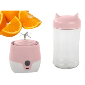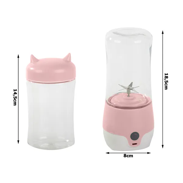 Hordozható USB-s akkumulátoros turmixgép, 350 ml, 6 pengés, rózsaszín