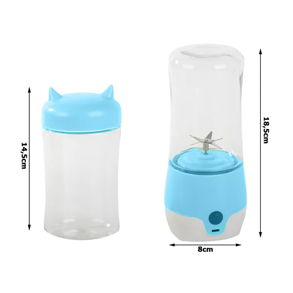 Hordozható USB-s vezeték nélküli turmixgép, 350 ml, 6 penge, kék