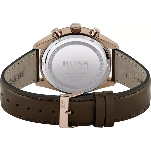 A tok kiváló minőségű rozsdamentes acélból készült, rózsaarany színű bevonattal, amely hosszú távon is ellenálló megjelenést biztosít. A kényelmes barna bőrszíj elegáns összhatást ad, a WR100 vízállóság pedig lehetővé teszi az úszást és a sekély vízben történő használatot anélkül, hogy le kellene venni az órát.