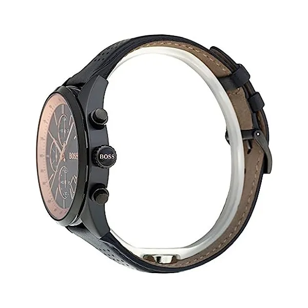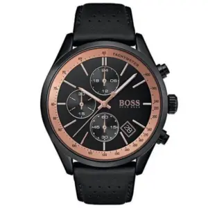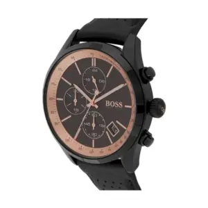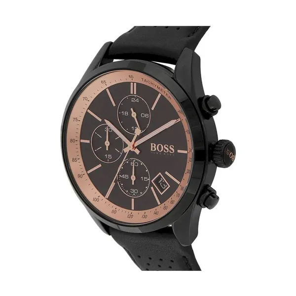 A Hugo Boss 1513550 Grand Prix Chronograph férfi karóra precíz japán кварц szerkezettel működik, elemes táplálással (kb. 2 év üzemidő). A fekete, réz árnyalatú részletekkel készült számlapot jól olvasható jelölések egészítik ki, a tartós mineral üveg pedig mindennapi használat mellett is megbízható védelmet nyújt. A fekete rozsdamentes acél tok elegánsan illeszkedik a kényelmes, fekete bőrszíjhoz.