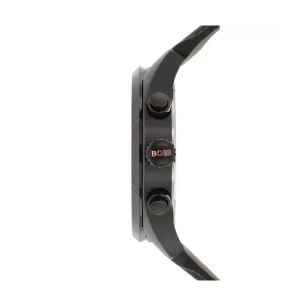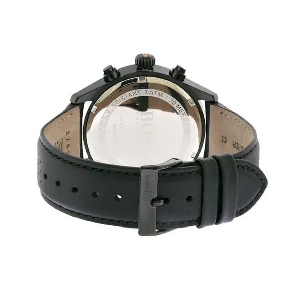 Hugo Boss férfi kronográf karóra 44 mm, fekete bőrszíj, quartz