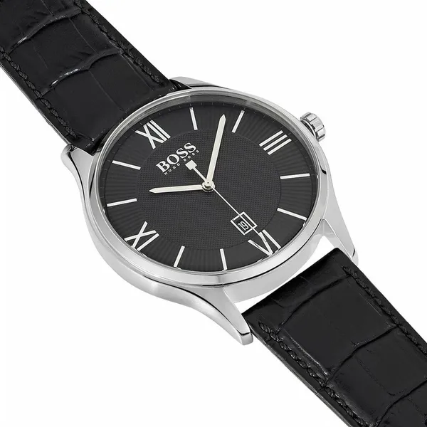 A Hugo Boss Governor 1513485 férfi karóra a német precizitást ötvözi a kifinomult divattal. Ezüstszínű, 44 mm-es nemesacél tokja és letisztult fekete számlapja visszafogottan vonzza a tekintetet, míg a puha fekete bőrszíj kényelmes viseletet garantál akár egész nap.