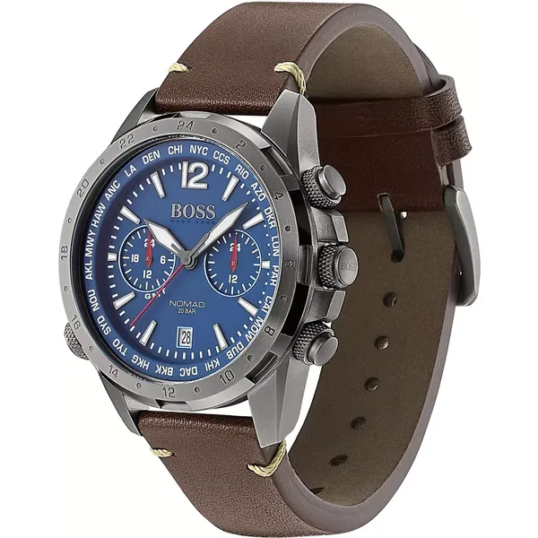 Hugo Boss Nomad férfi karóra 48 mm, barna bőr szíj, WR200