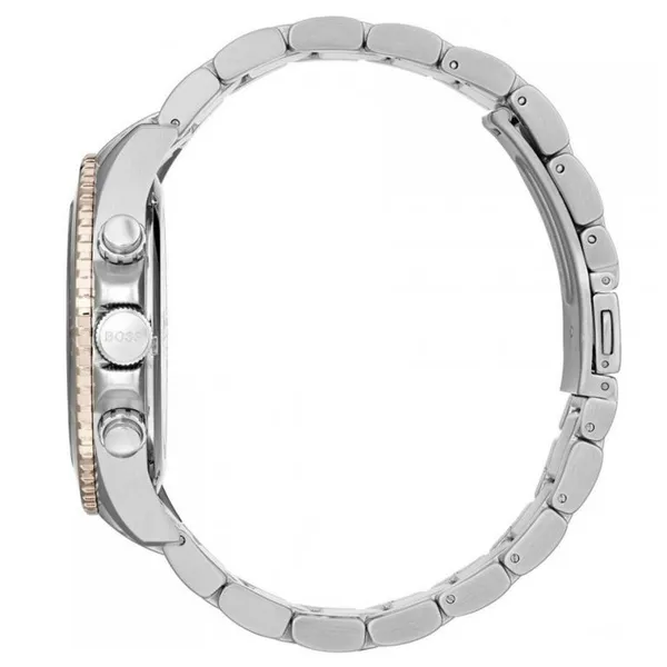 A Hugo Boss 1513705 Ocean Edition Chrono férfi karóra elegáns és sportos viselethez is remek választás. A fekete számlapot ásványüveg védi, a számlapon elhelyezett segédszámlapok pedig a kronográf funkciók áttekinthető használatát segítik.