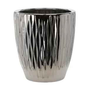 Emeld otthonod vagy teraszod hangulatát ezzel az impozáns, hullámos textúrájú, ezüstszínű kerámia kaspóval, amely 45×45×51,5 cm-es méretével a nagyobb szobanövényeknek és kinti dísznövényeknek is elegáns otthont biztosít.