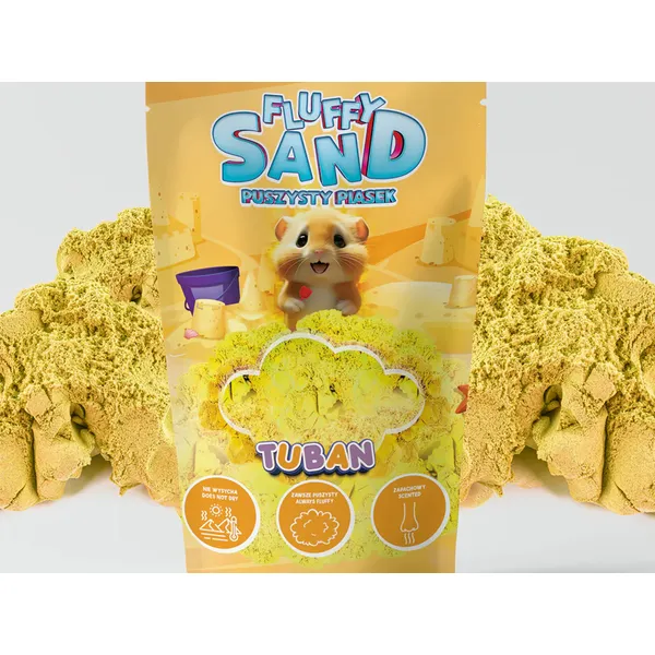 A fluffy szenzoros homok különlegesen könnyű, puha állagú élményt ad, és ideális otthoni játékhoz. Nem pereg szét, nem szárad ki, így hosszabb ideig élvezhető. Élénk sárga színe és kellemes, rágógumi illata még izgalmasabbá teszi a kreatív alkotást.