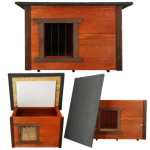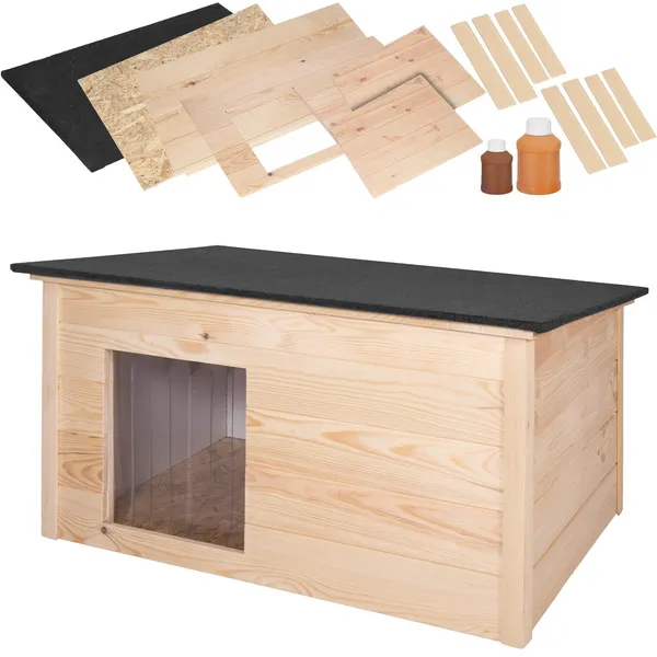 Az impregnált fenyőház megemelt lábakkal és levehető tetővel száraz, meleg menedéket nyújt kedvencének, miközben a hőzáró függöny óv a széltől. Összeszerelés nélkül, a kézbesítés után azonnal használatba vehető, így Önnek csak a puha fekhelyről kell gondoskodnia.
