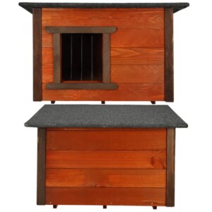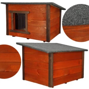 Az impregnált fenyőfából készült, közepes (M) méretű kutyaház időjárásálló otthont kínál négylábú kedvencének. A barna árnyalatú, bitumenes zsindellyel fedett tető teljesen leemelhető, így a belső tér könnyen tisztítható, szellőztethető.