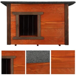 Impregnált fenyőfa kutyaház M méret, barna, levehető tető