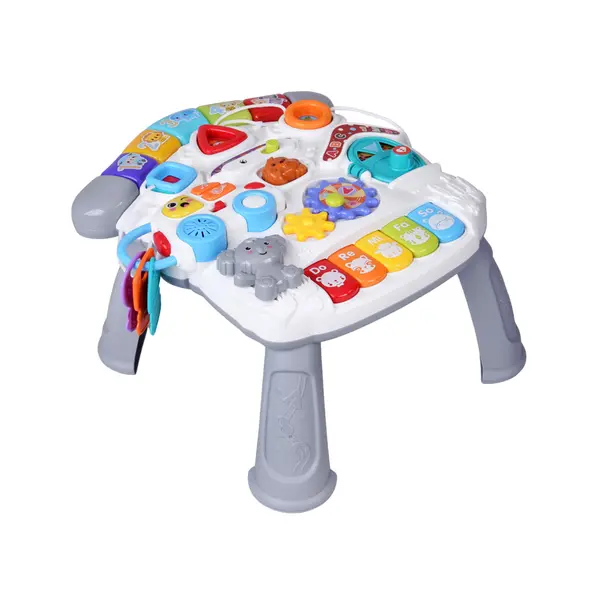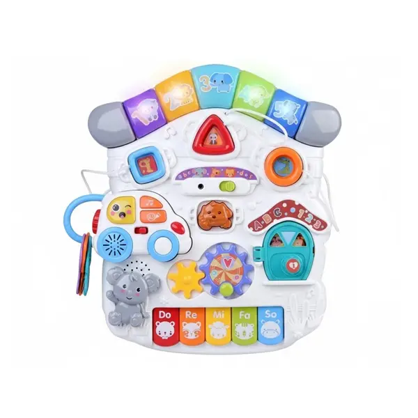 Ez a színes fejlesztő asztal igazi játékcentrum: gombok, mozgó elemek, vidám dallamok és fényhatások hívják a kicsit játékra, felfedezésre és tanulásra. A barátságos, élénk színek felkeltik a figyelmet, a tartós, gyerekbarát műanyag pedig a mindennapi használatra készült.