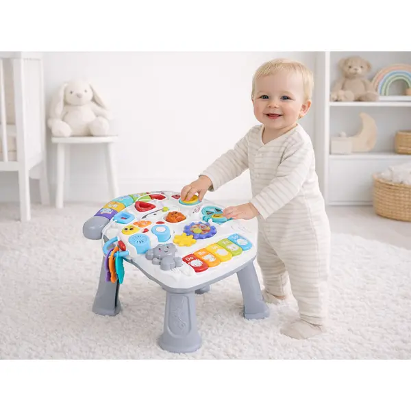 Az interaktív fejlesztő asztal ideális választás, ha olyan játékot keresel, amely egyszerre szórakoztat és tanít: a fények, hangok és kézzel mozgatható elemek segítik a kicsit a világ felfedezésében.