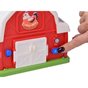 Hangos, zenélős farmház, amely a formabedobás örömén keresztül tanítja az állatok hangját, a formák párosítását és a figyelmet. A nyitható tető, a fogaskerekek és a hordozó fül kényelmessé és változatossá teszik a játékot, így otthon és útközben is hosszabban leköti a kicsiket.