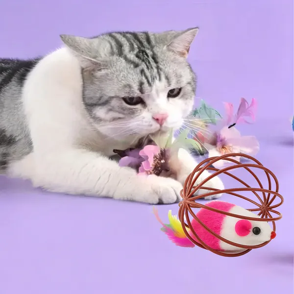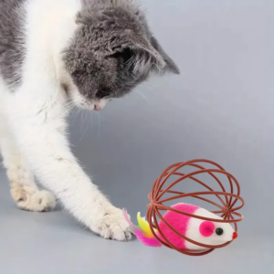 • Vadászösztön serkentése – a drótketrecben rejtőző plüss egér mozgása természetes préda-élményt ad.