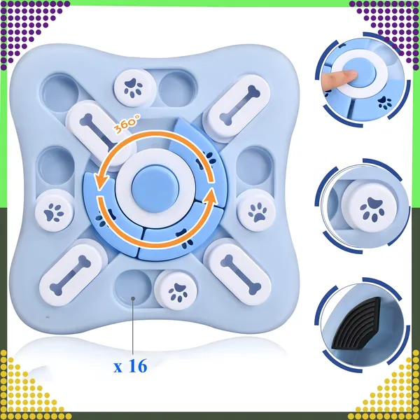 Akár egy unalmas délutánon, akár gyors­evő kedvencünk lefékezésére, ez az interaktív szaglásjáték és lassító etetőtál órákra leköti a kutyát. A rejtett rekeszekbe eldugott jutalomfalatok felébresztik a természetes szimatoló ösztönt, miközben a csúszásgátló talpak stabilan tartják a játékot.