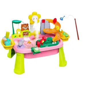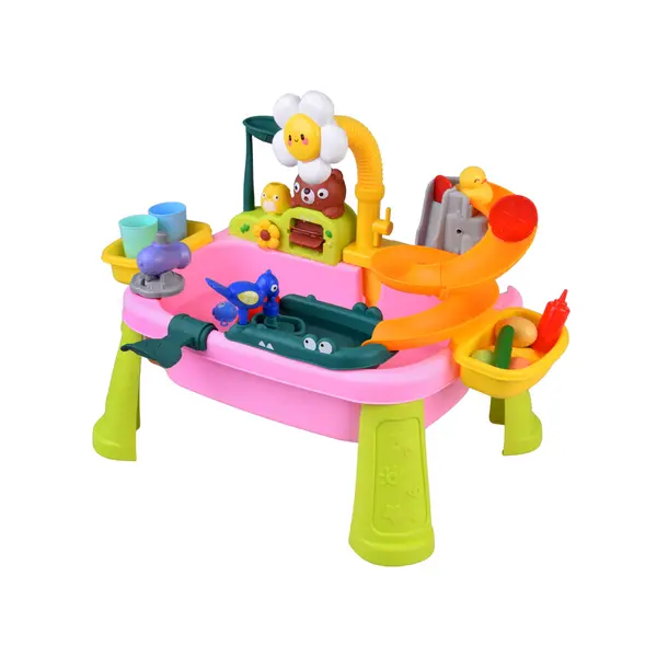 Színes, interaktív vizes játszóasztal csúszdával, zuhannyal és rengeteg kiegészítővel – igazi mini vízi játszótér, amely a kreatív játékot mozgással és felfedezéssel köti össze. Használható bent és kint is: erkélyen, teraszon, kertben vagy akár a strandon.